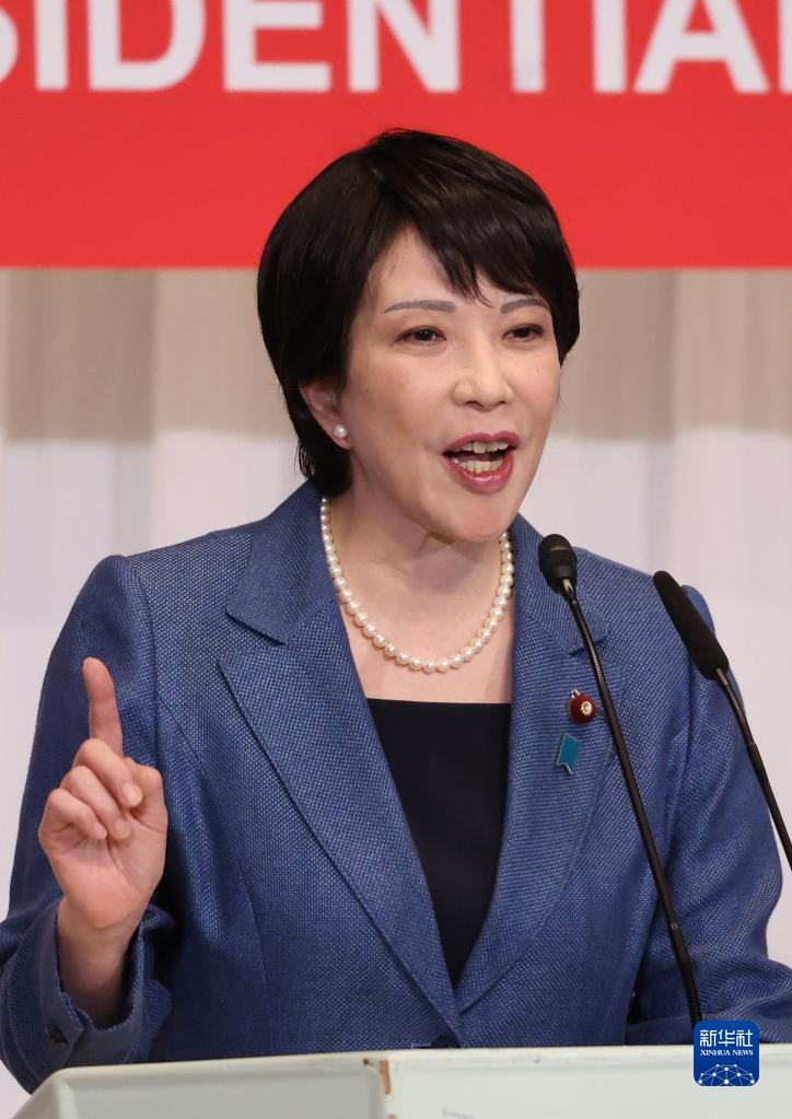 9月17日,在日本东京,高市早苗在自民党总部发表竞选演讲。
