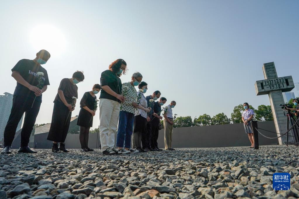 9月18日,南京大屠杀幸存者后代代表在活动中默哀。新华社记者 李博 摄