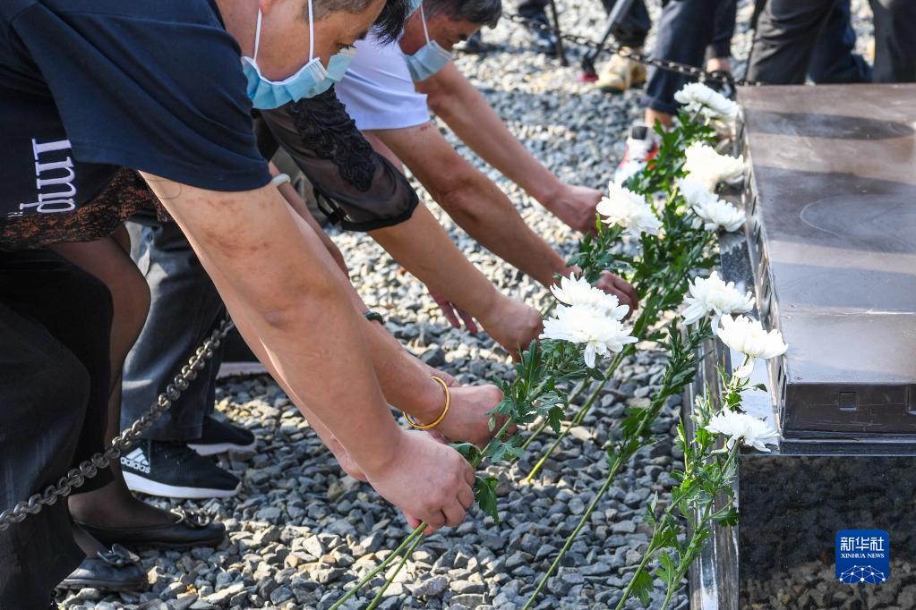9月18日,南京大屠杀幸存者后代代表在活动中敬献鲜花。新华社记者 李博 摄