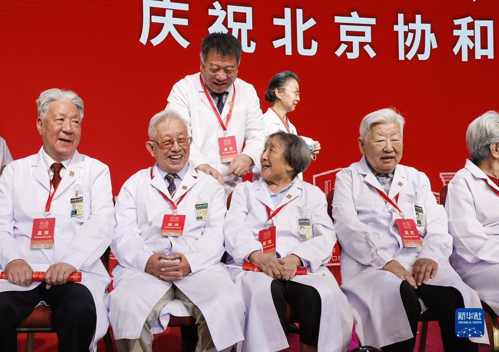 9月16日,庆祝北京协和医院建院100周年大会在北京协和医院学术会堂举行,这是北京协和医院老专家在庆祝大会后准备合影。
