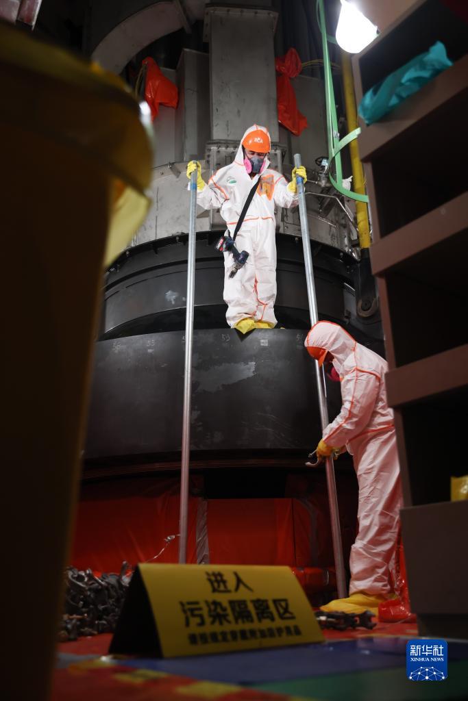 核电站每隔十八个月要进行一次大修,对运行机组的设备和系统进行“体检”和“保养”。“换料”是大修期间最关键的环节之一,平时密闭的核岛内部会被暂时打开。在这期间,维修处的工作人员需要穿着厚重的防护衣物,佩戴辐射测量仪,昼夜不停作业,替换三分之一的核燃料。他们如同海南核电的每一个精密仪器一样,用精准的操作来保证核电站的安全运行,也为海南的高速发展提供了稳定的能源保障。