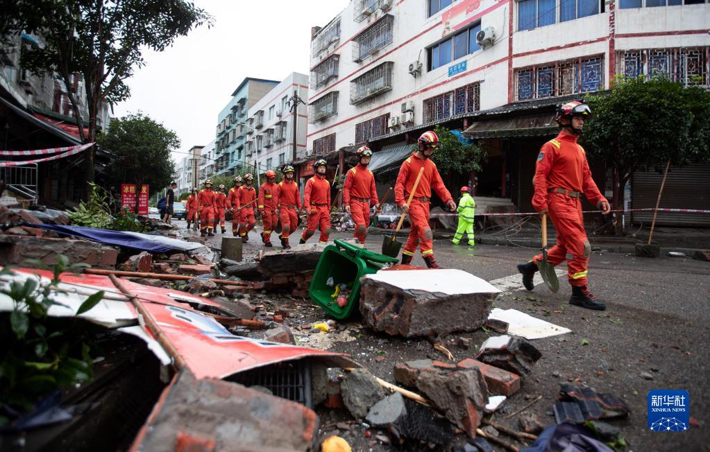 中国地震台网正式测定,9月16日4时33分,四川省泸州市泸县发生6.0级地震,震源深度10千米。这是9月16日,在泸县福集镇大田社区,搜救队伍在行进中。