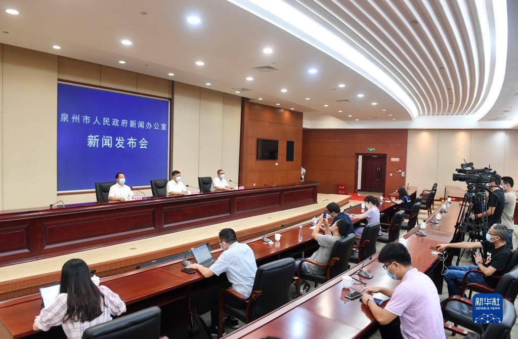 9月18日拍摄的泉州市疫情防控新闻发布会现场。