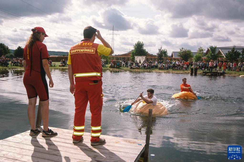 9月19日,人们在德国梅谢尼希参加趣味“南瓜船”比赛。