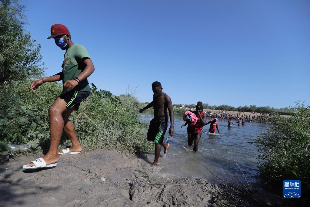 近期,大批非法移民在连接美国得克萨斯州边境小城德尔里奥与墨西哥科阿韦拉州阿库尼亚城的“德尔里奥国际桥”一带“安营扎寨”,其中许多人是海地人。他们不时到阿库尼亚城购买食物和生活必需品,再蹚河返回宿营地。