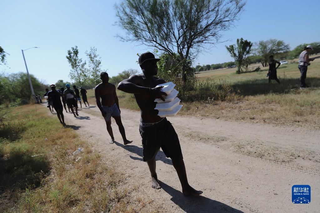 近期,大批非法移民在连接美国得克萨斯州边境小城德尔里奥与墨西哥科阿韦拉州阿库尼亚城的“德尔里奥国际桥”一带“安营扎寨”,其中许多人是海地人。他们不时到阿库尼亚城购买食物和生活必需品,再蹚河返回宿营地。