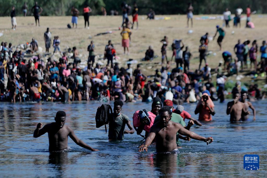 近期,大批非法移民在连接美国得克萨斯州边境小城德尔里奥与墨西哥科阿韦拉州阿库尼亚城的“德尔里奥国际桥”一带“安营扎寨”,其中许多人是海地人。他们不时到阿库尼亚城购买食物和生活必需品,再蹚河返回宿营地。