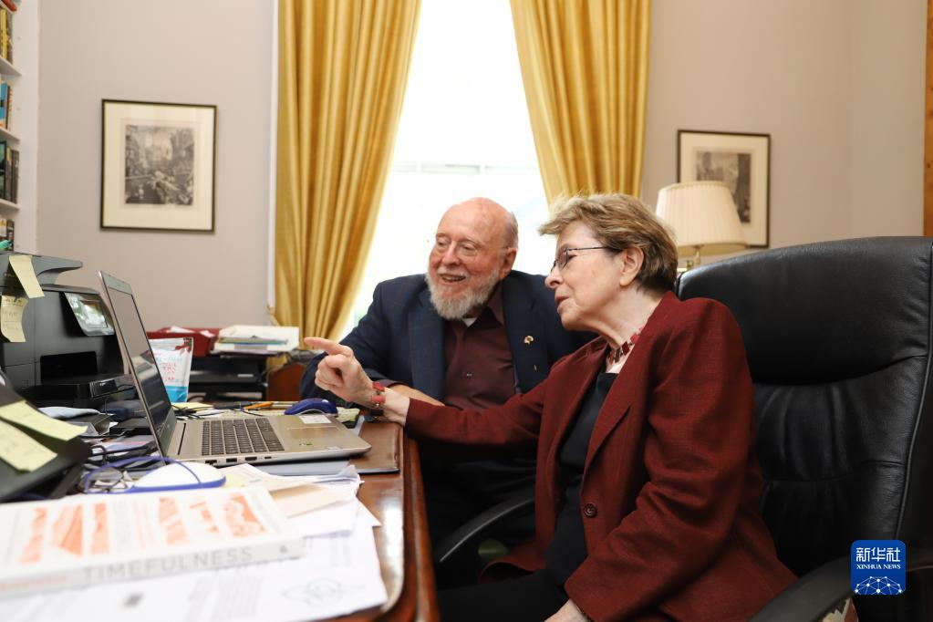 9月16日,获得第十五届中华图书特殊贡献奖的爱尔兰学者杰鲁莎·麦科马克与丈夫约翰·布莱尔在都柏林的家中工作。新华社发