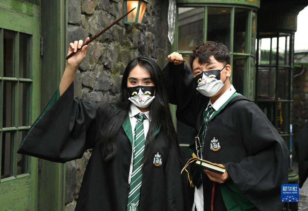 9月20日,在北京环球影城主题公园,游客在哈利·波特的魔法世界主题景区游览。