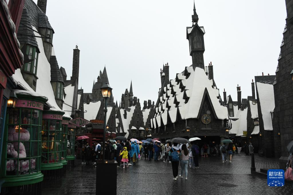 9月20日,在北京环球影城主题公园,游客在哈利·波特的魔法世界主题景区游览。