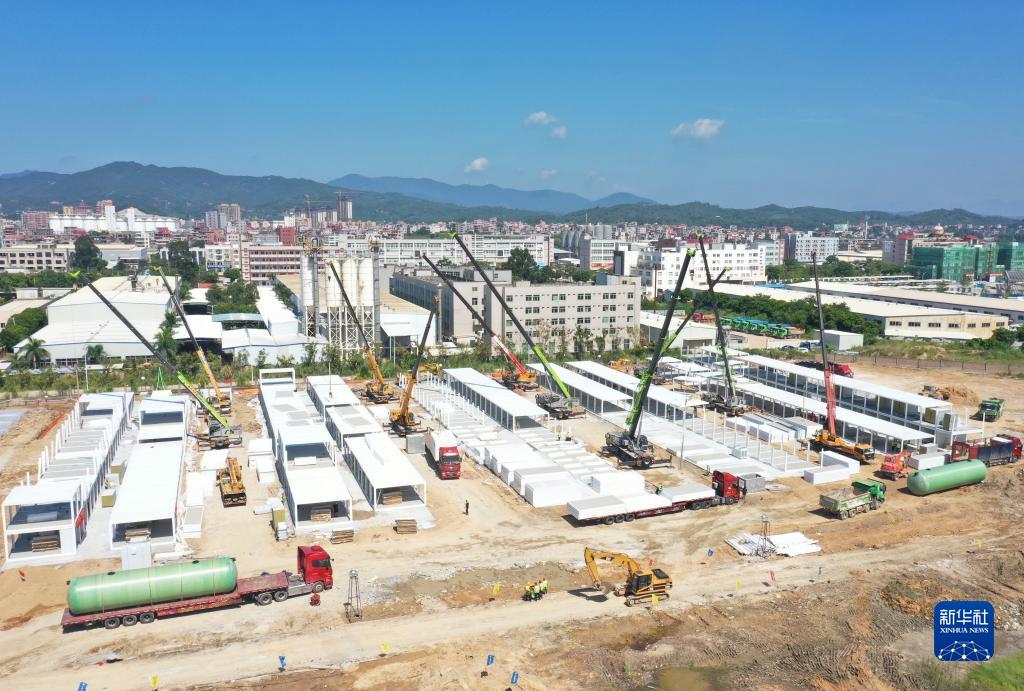 连日来,在福建省泉州市泉港区方舱临时隔离点项目工地,300多名施工人员不分昼夜加紧建设,力争在最短时间内建设完成并投入使用。