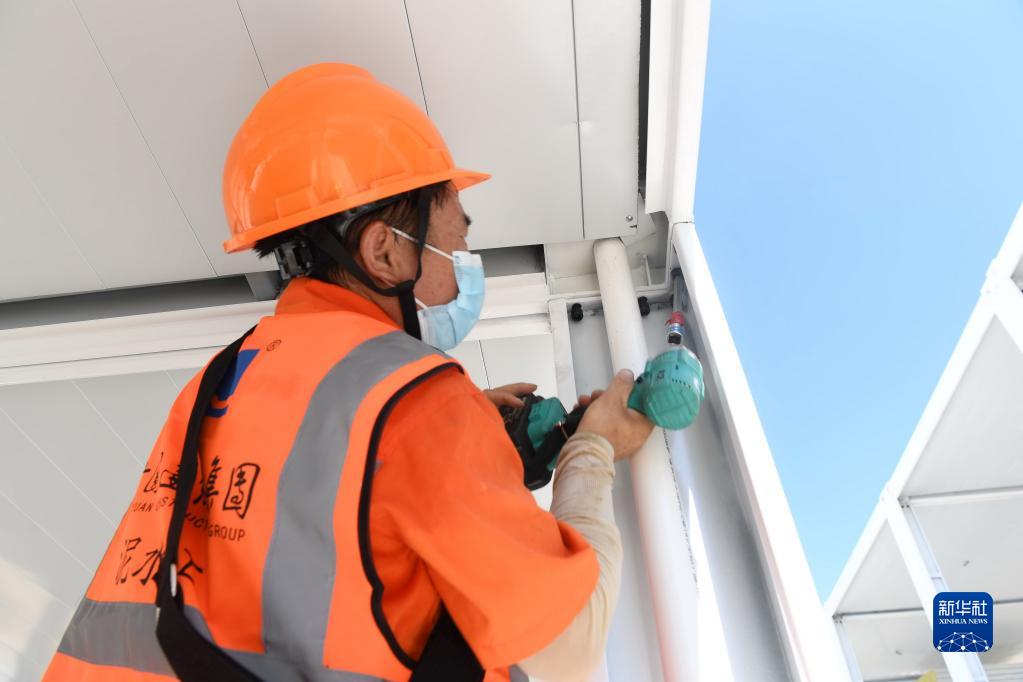 连日来,在福建省泉州市泉港区方舱临时隔离点项目工地,300多名施工人员不分昼夜加紧建设,力争在最短时间内建设完成并投入使用。