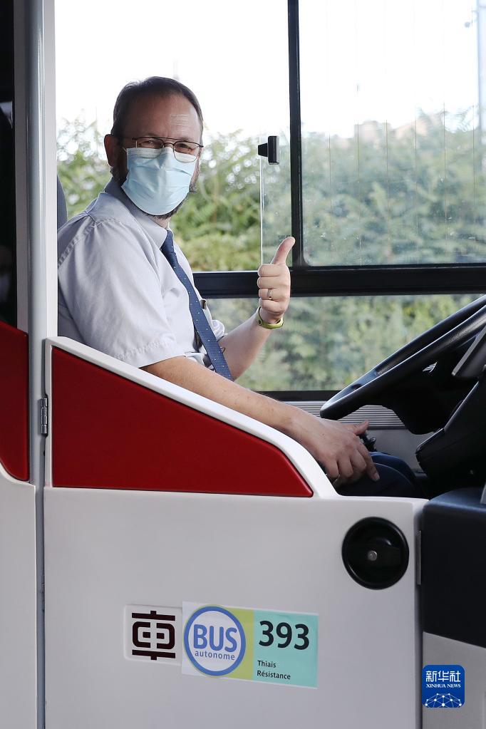9月17日,在法国巴黎,巴黎大众运输公司公交司机试驾“中车电动”制造的自动驾驶客车。