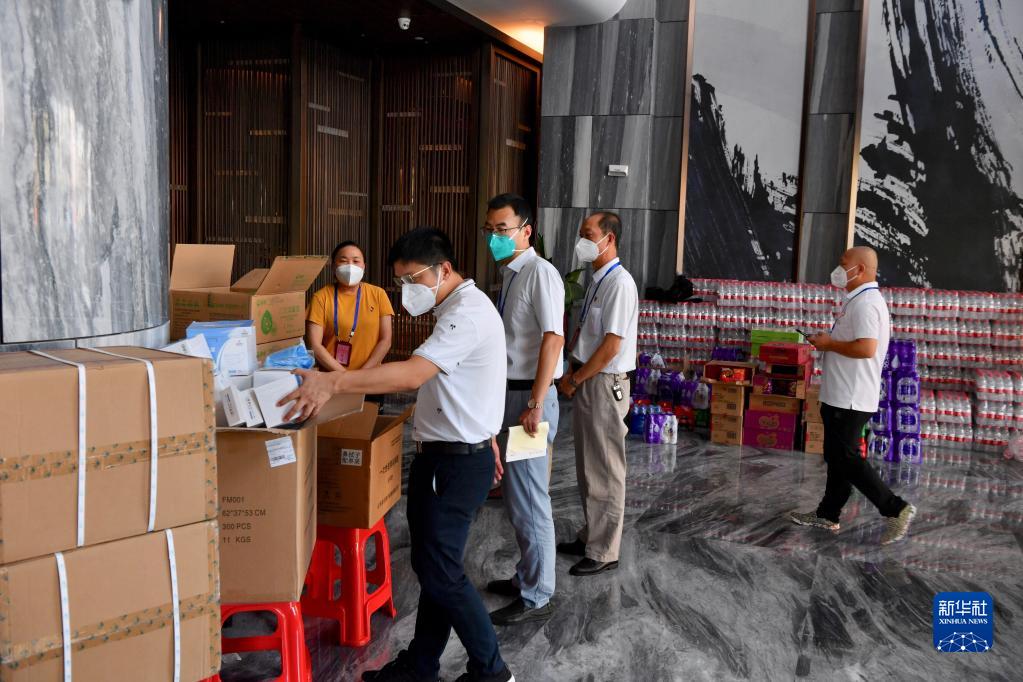 9月20日,国务院联防联控机制综合组福建工作组专家(左二、左三)在厦门市同安区一家隔离酒店指导疫情防控工作。