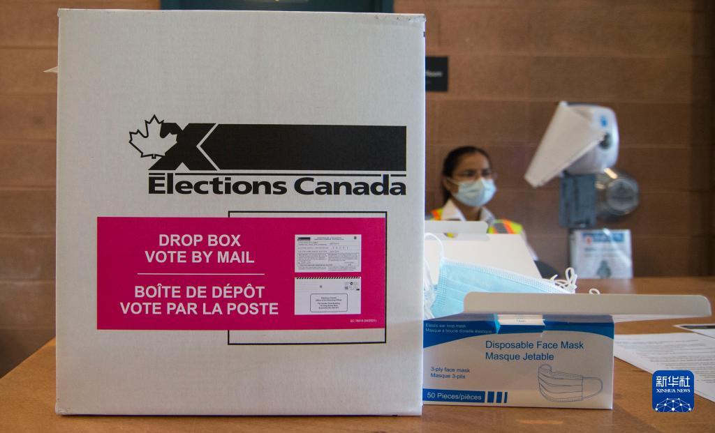 这是9月20日在加拿大安大略省米西索加一处投票站内拍摄的一个用于接受邮寄选票的票箱。