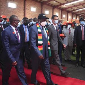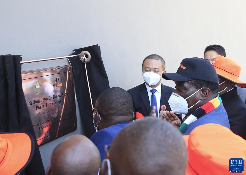 9月20日,在津巴布韦首都哈拉雷,津巴布韦总统姆南加古瓦为第三阶段国家移动宽带项目揭幕。