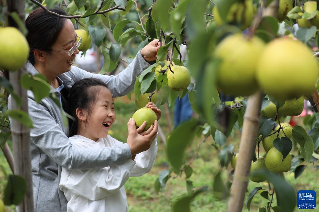 9月20日,在河北省石家庄市赵县谢庄村,游客在体验采摘。