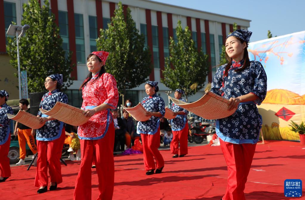 9月21日,在山东省滨州市博兴县店子镇店子村,村民在表演节目,喜迎中秋、庆祝丰收。