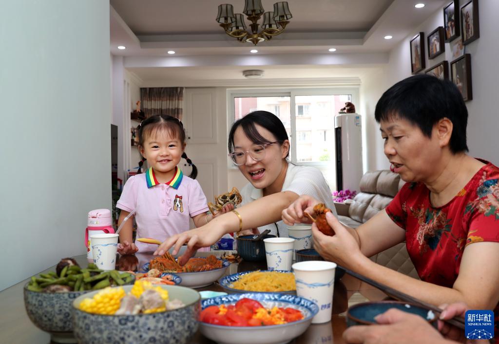 9月20日,上海市兴业中学援滇支教教师周华的家人在上海的家中吃饭。新华社记者 刘颖 摄