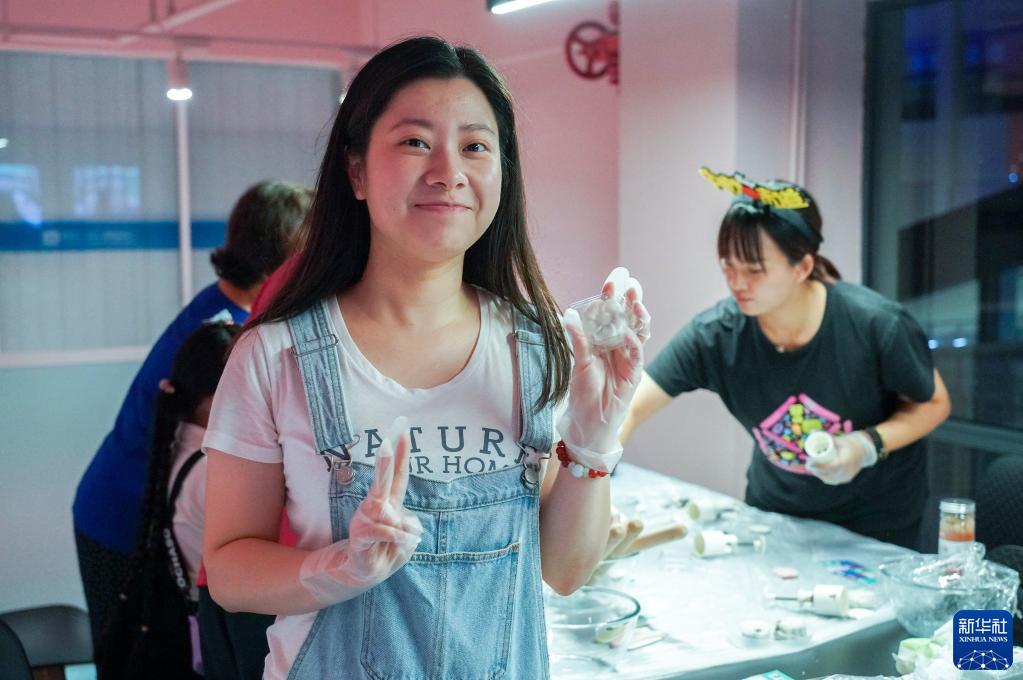 9月19日,来自广东的租客李希恂展示她在青年公寓组织的中秋活动中制作的月饼。新华社记者 王翔 摄