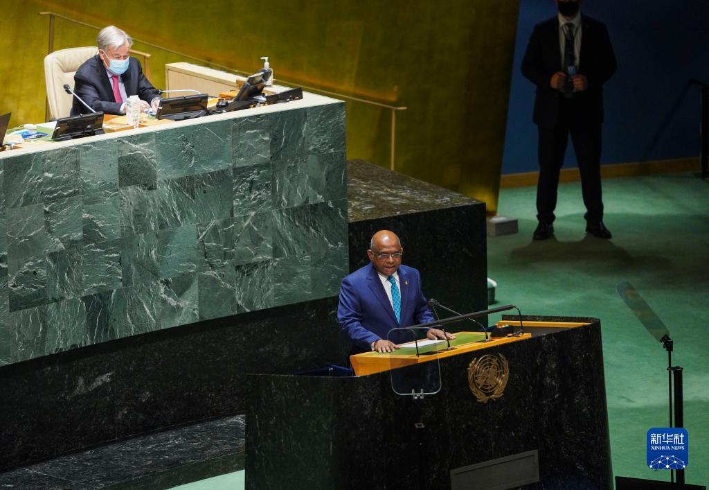 9月21日,在位于纽约的联合国总部,第76届联合国大会主席阿卜杜拉·沙希德(前)主持联合国大会一般性辩论开幕式。