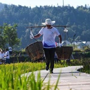 当日,浙江省建德市大同镇举办一场以“共同富裕 乐享田间”为主题的稻田趣味运动会,包括稻谷收割、稻田独轮车、挑稻谷接力、田间拔河、团体跳大绳等趣味运动项目。本次田间趣味运动会是大同镇美丽乡村稻香生活节的主要活动之一,当地通过在金秋时节举办稻香生活节,庆祝丰收、分享快乐,在丰富农村文化生活的同时,有效推动农文旅体融合发展,弘扬悠久深厚的农耕文化,全面展示建德大同的乡村新变化、农业新发展和农民新风貌。