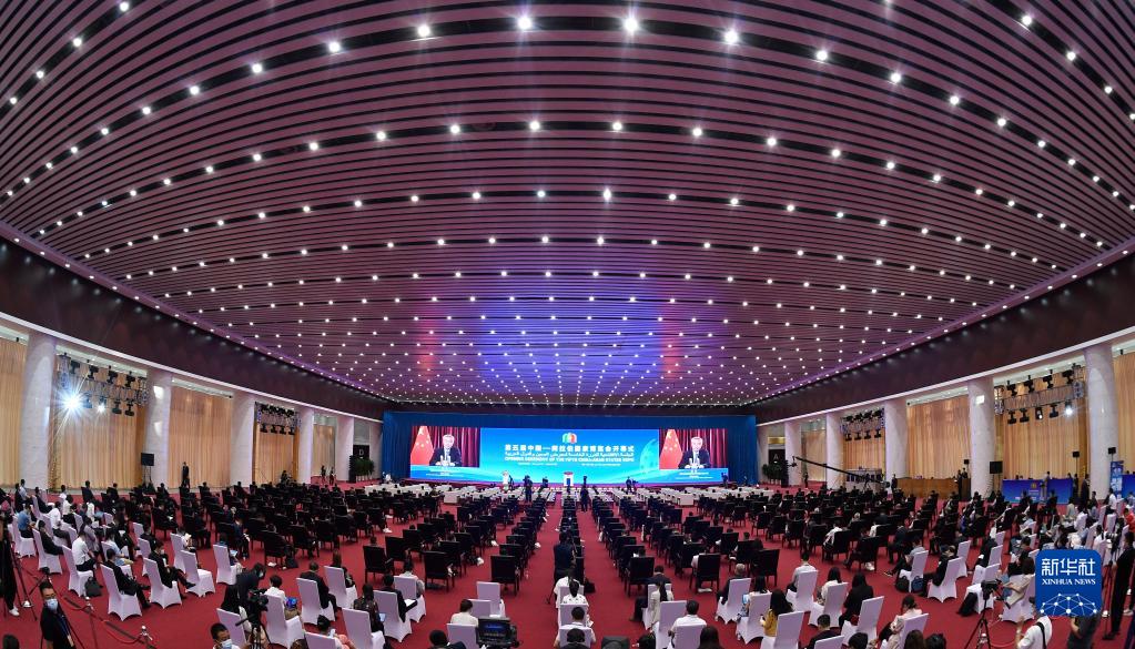 这是8月19日在银川拍摄的第五届中国-阿拉伯国家博览会开幕式现场。