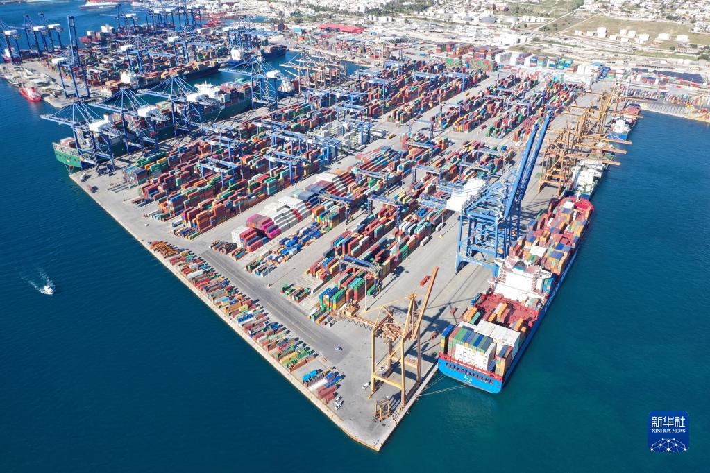 这是希腊比雷埃夫斯港(2019年1月16日摄,无人机照片)。中国远洋海运集团运营的希腊最大港口比雷埃夫斯港已成为全球发展最快的集装箱港口之一。