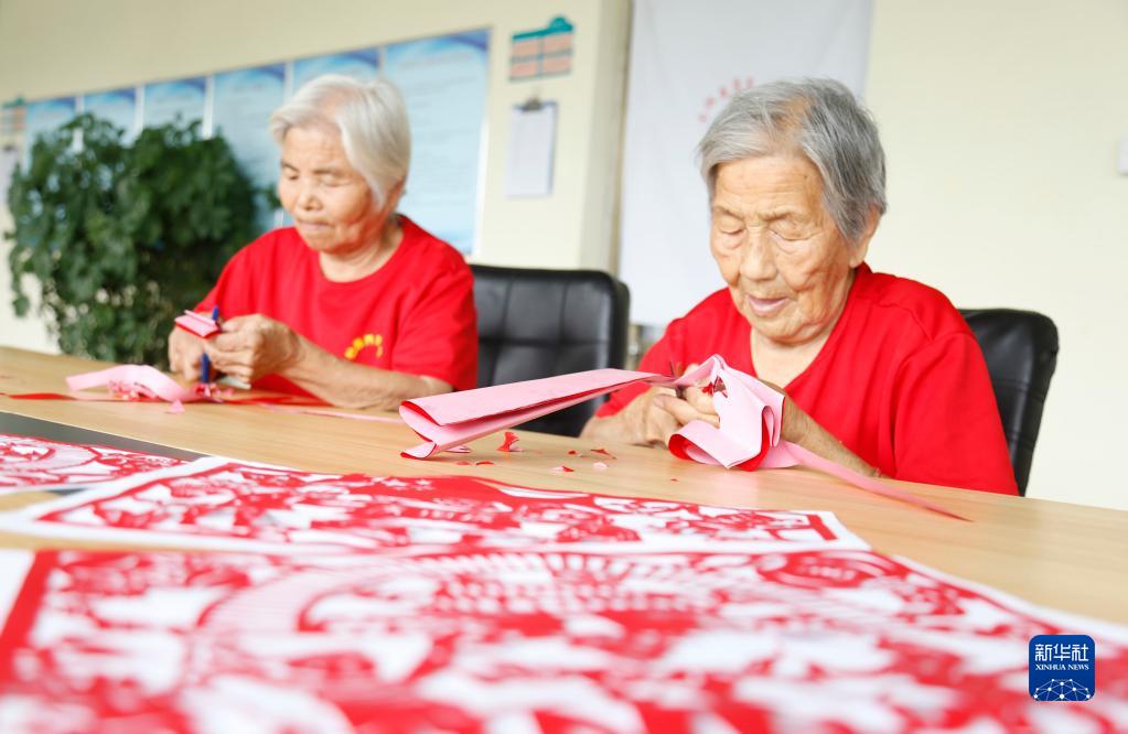 9月23日,老人在河北省邢台市南和区三思镇一家养老机构做手工。