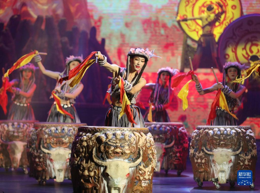 9月22日晚,湖南张家界魅力湘西艺术团的演员在舞台上表演。