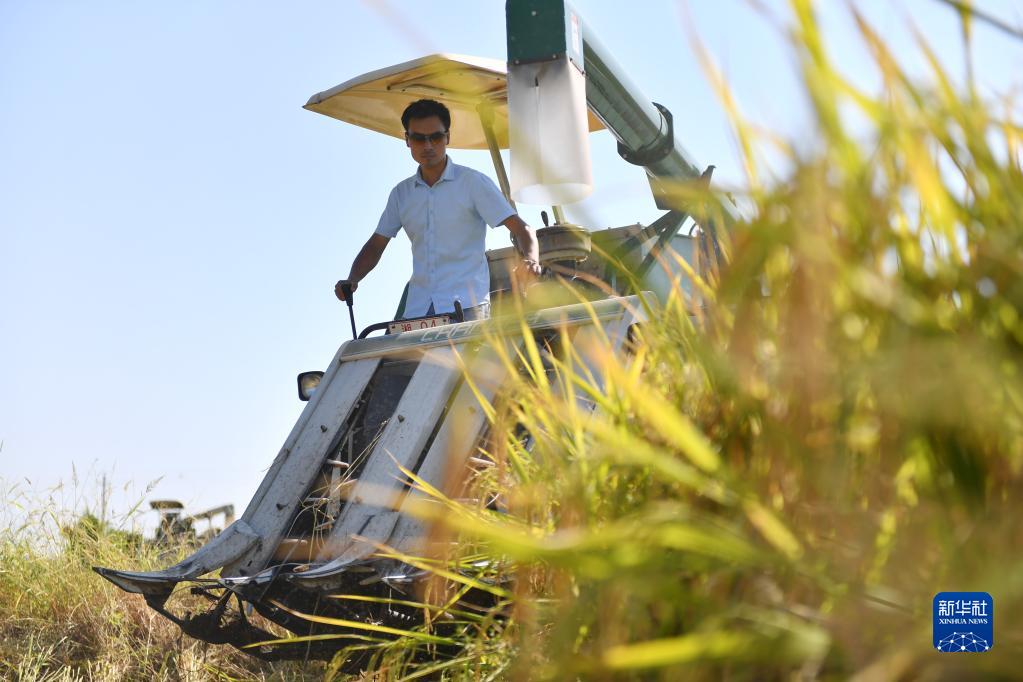 9月22日,在湖南省衡阳市衡阳县库宗桥镇,农机手驾驶农机收割稻谷。