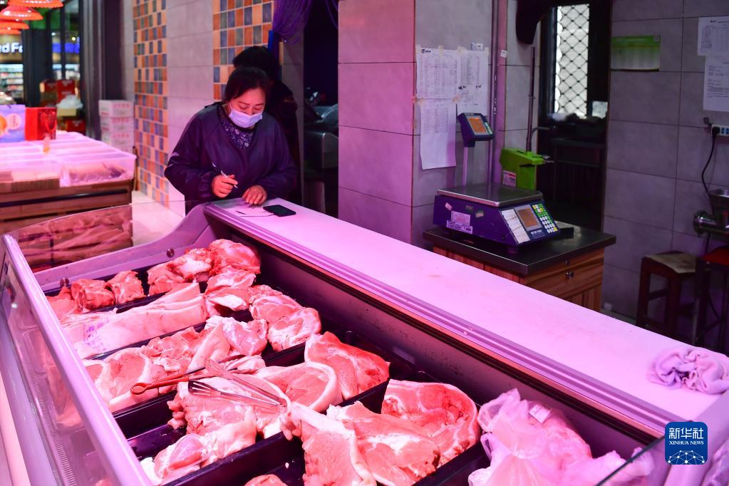 9月23日,在哈尔滨市巴彦县兴隆镇一超市,工作人员核对肉类数量。