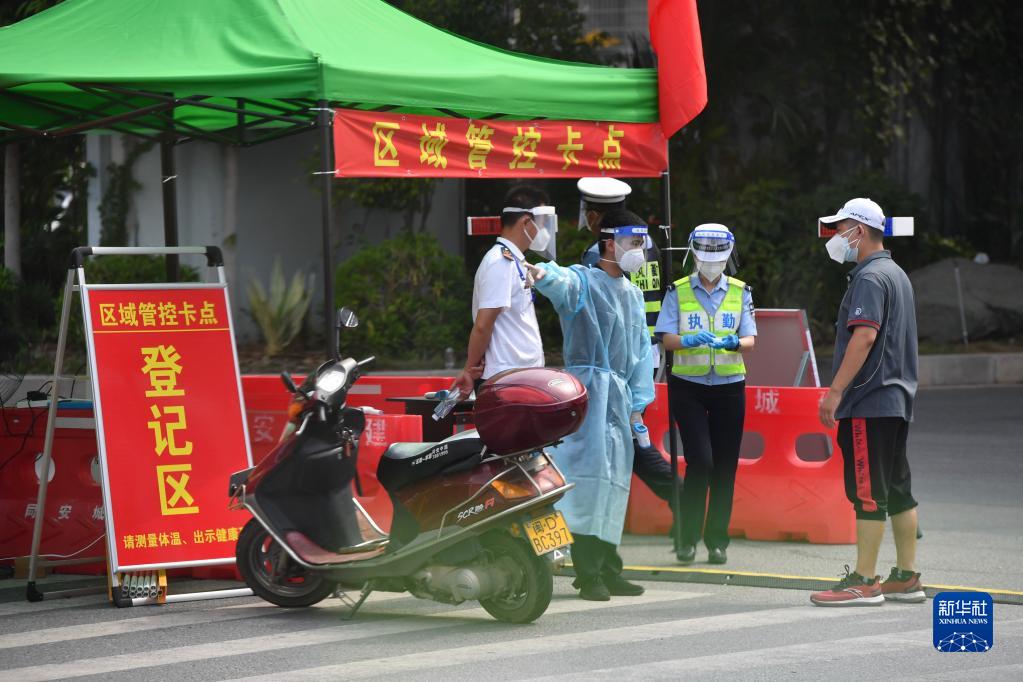 9月23日,在厦门市同安区,疫情防控人员在区域管控卡点值守。
