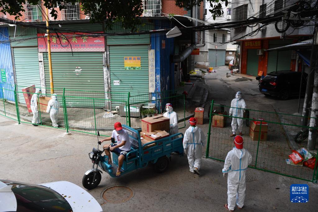 9月23日,在厦门市同安区祥平街道西湖社区山坪里,疫情防控人员为居家隔离的居民运送食品。