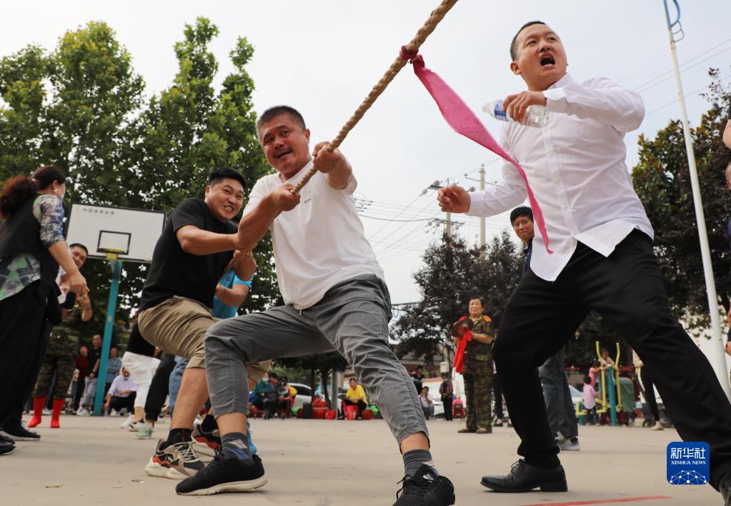 9月23日,河南省焦作市温县温泉街道办事处一支代表队在参加庆祝中国农民丰收节拔河比赛。