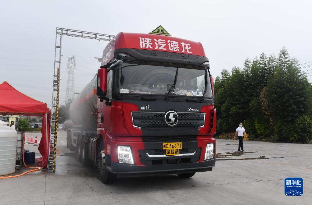 9月23日,进出泉港石化工业园区的运输车辆在泉州市泉港危化品运输综合服务有限公司进行消杀。