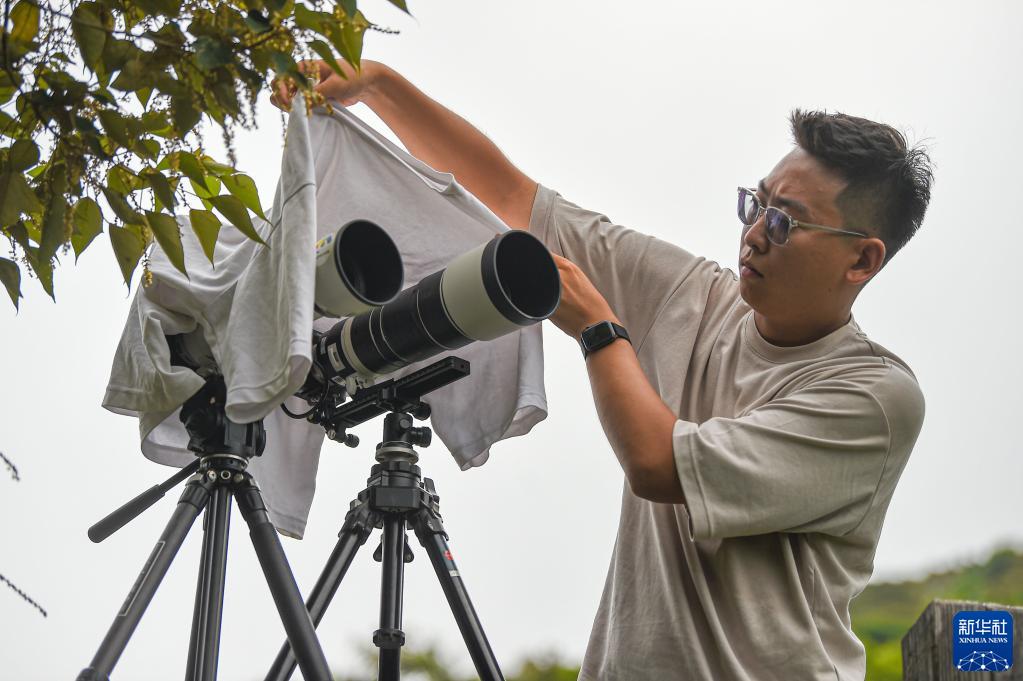 9月20日,天舟三号货运飞船发射前6小时,航天摄影发烧友关天宇在文昌铜鼓岭架好拍摄设备,并特意为设备盖上一件衣服,以防其因长时间暴晒而损坏。
