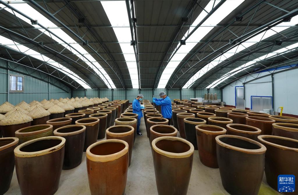 9月24日,乐亭县姜各庄镇黄湾村一家虾酱厂的工人在发酵车间工作。