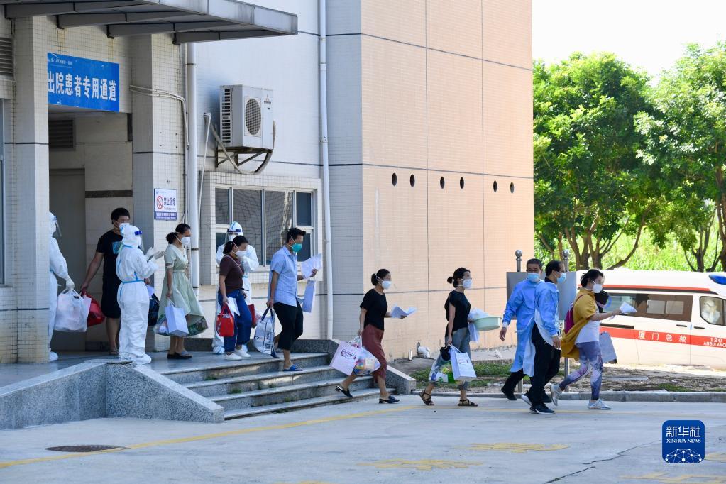 当日,在厦门市新冠肺炎定点救治医院(杏林医院),7名新冠肺炎确诊患者治愈出院,由转运救护车送往康复医院继续进行康复观察,这是厦门本轮疫情以来首批出院的患者。