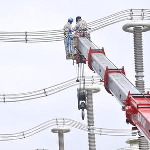 9月25日,国网北京市电力公司延庆换流站的员工在检查输变电设备。