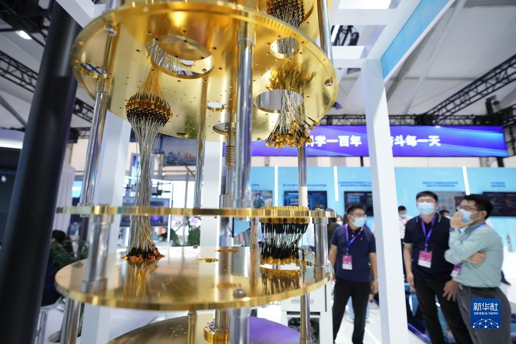 9月25日在中关村论坛展览(科博会)现场拍摄的无液氦稀释制冷机。
