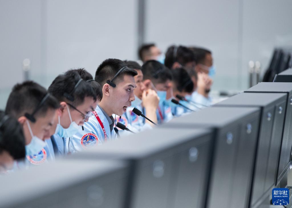 在北京航天飞行控制中心,科研人员在监测神舟十二号载人飞船与天和核心舱自主快速交会对接情况(6月17日摄)。