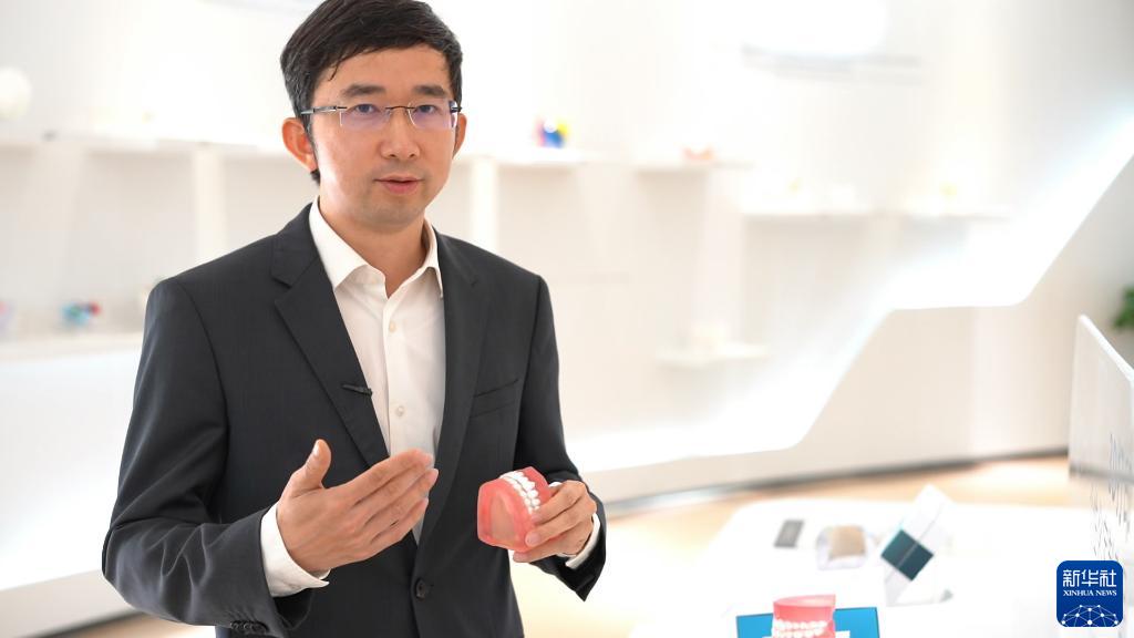 “80后”海归袁玉宇介绍他创立的广州迈普再生医学科技有限公司研发的产品(2019年2月3日摄)。