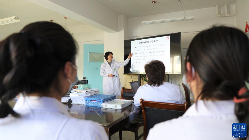 天津市中心妇产科医院妇产专业副主任医师饶阳为甘肃甘南藏族自治州人民医院妇产科的医生进行培训(1月15日摄)。