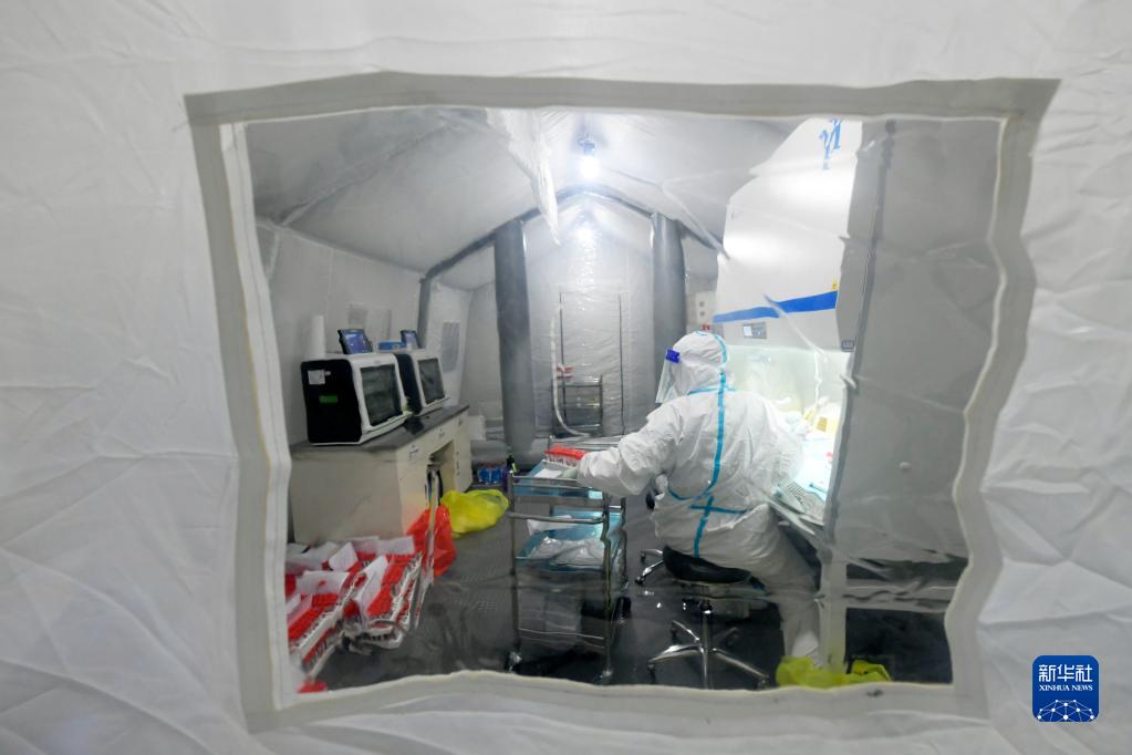 9月25日,工作人员在位于巴彦县的黑龙江省疾控中心移动方舱核酸检测实验室工作。