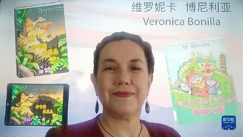 9月14日,第十五届中华图书特殊贡献奖颁奖仪式在京举行。获奖者厄瓜多尔作家博尼利亚通过视频发表感言(视频截图)。