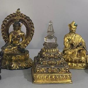 明末清初黄铜同侍从无量寿佛造像(资料照片)。