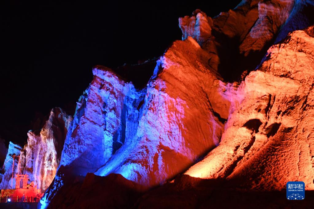 9月26日晚,在甘肃省张掖七彩丹霞景区,随着光影演绎的《阿兰拉格达》在万象土林谷景点正式亮灯,七彩丹霞“夜游”模式开启。据介绍,光影演绎的《阿兰拉格达》以当地裕固族流传的神话故事改编而成,将丹霞地貌景观与音乐灯光秀结合,让游客在夜间的七彩丹霞享受精彩纷呈的视觉盛宴和身临其境的互动体验。