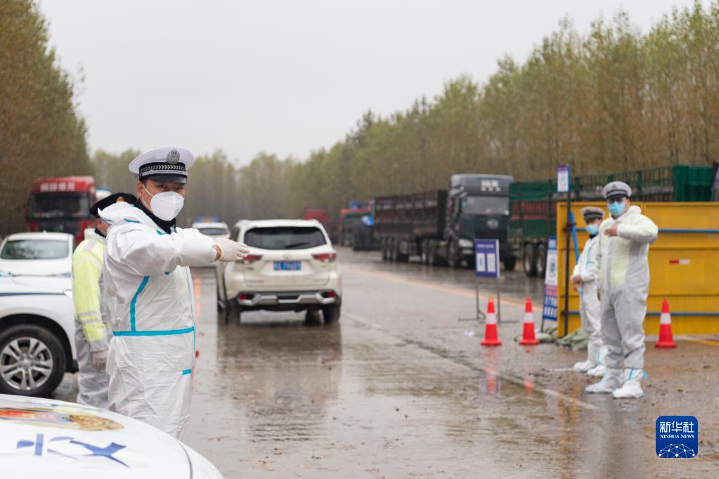 9月27日,在巴彦县巴彦镇出城口的卡点,公安干警和交通局工作人员在查验车辆。