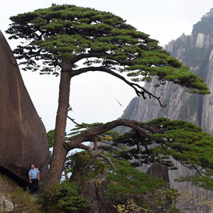 迎客松是安徽黄山风景区的标志性景观,它生长在海拔1670米处,树形像是一位好客的主人伸开双臂欢迎客人。